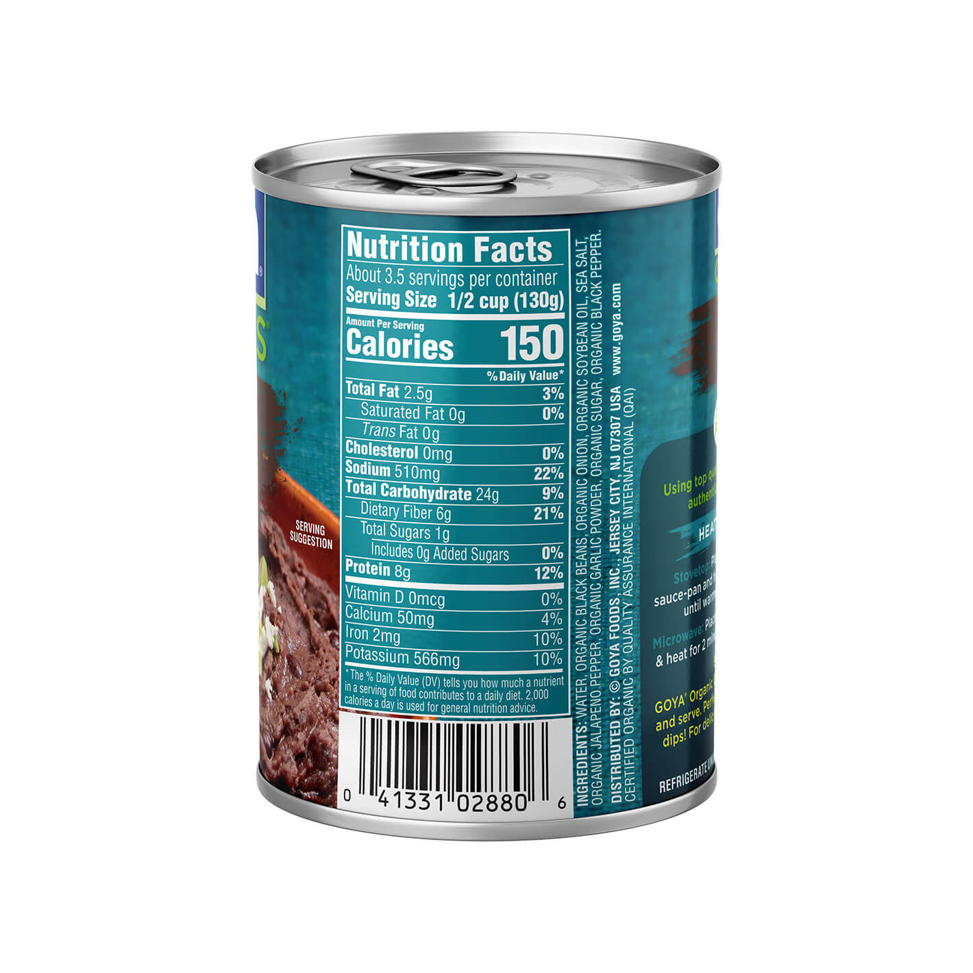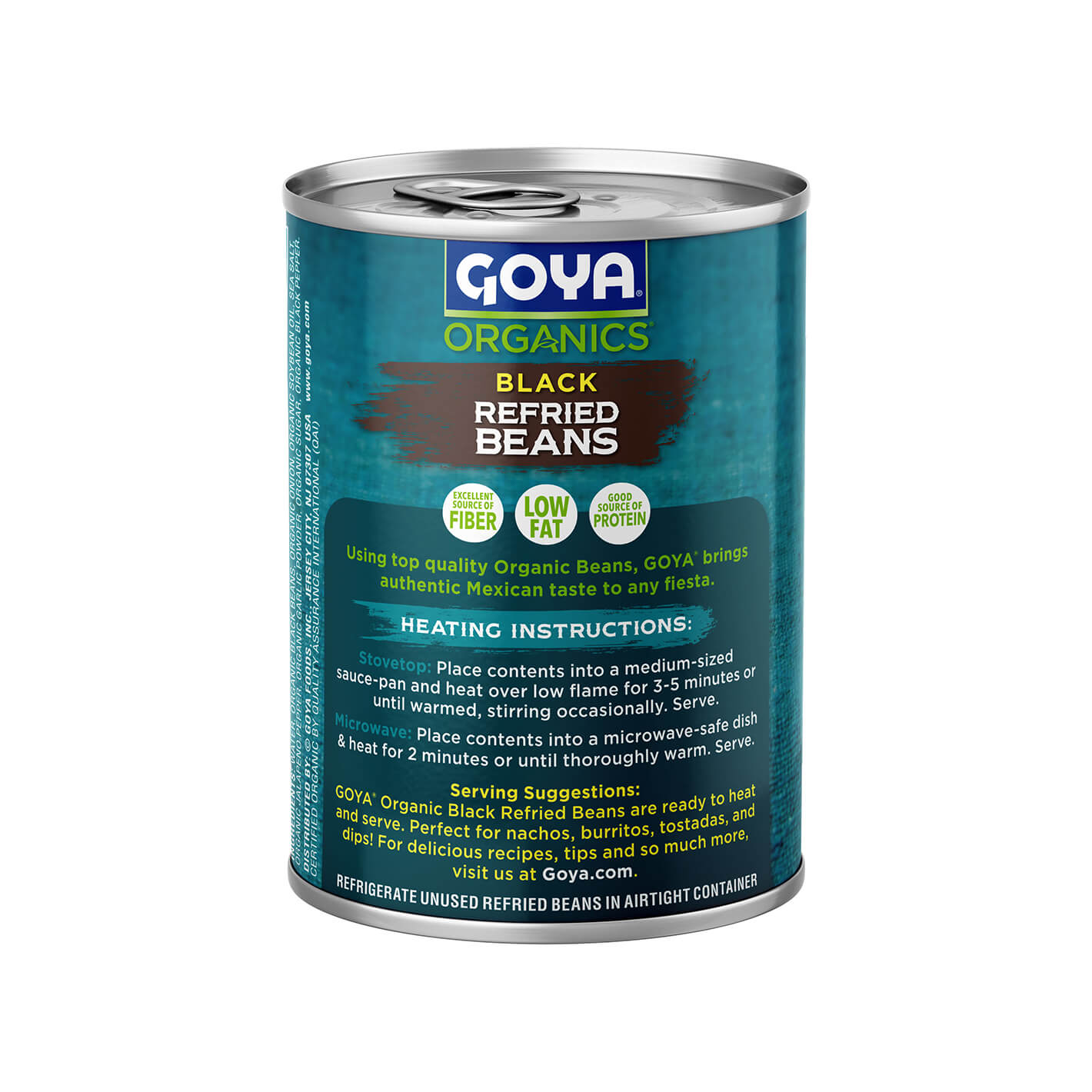 If black beans are your favorite, you can’t miss GOYA® Organic Black Refried Beans. They’re a must-have in traditional Mexican and Tex-Mex cooking. They have a super creamy texture and rich flavor, making them perfect to enjoy on their own, as a dip, or as an ingredient in a variety of recipes. These refried beans are prepared with the authentic flavors of black beans, onion, garlic, chiles, and spices, and the best part is that they come ready to eat. Try them in traditional recipes such as Tacos, Sopes, Molletes, Quesadillas, and many more. Keep them stocked in your pantry and enjoy them any time.